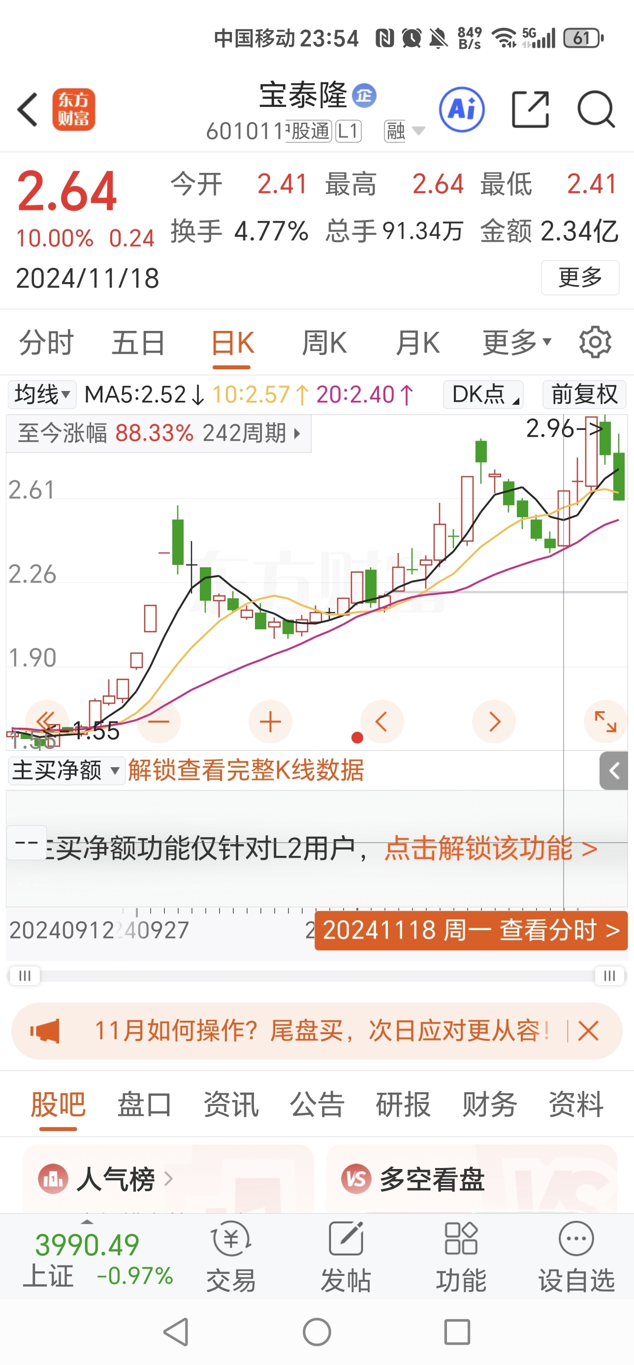 $宝泰隆(SH601011)$ 能不能按照去年的走势走,20个点以上就行