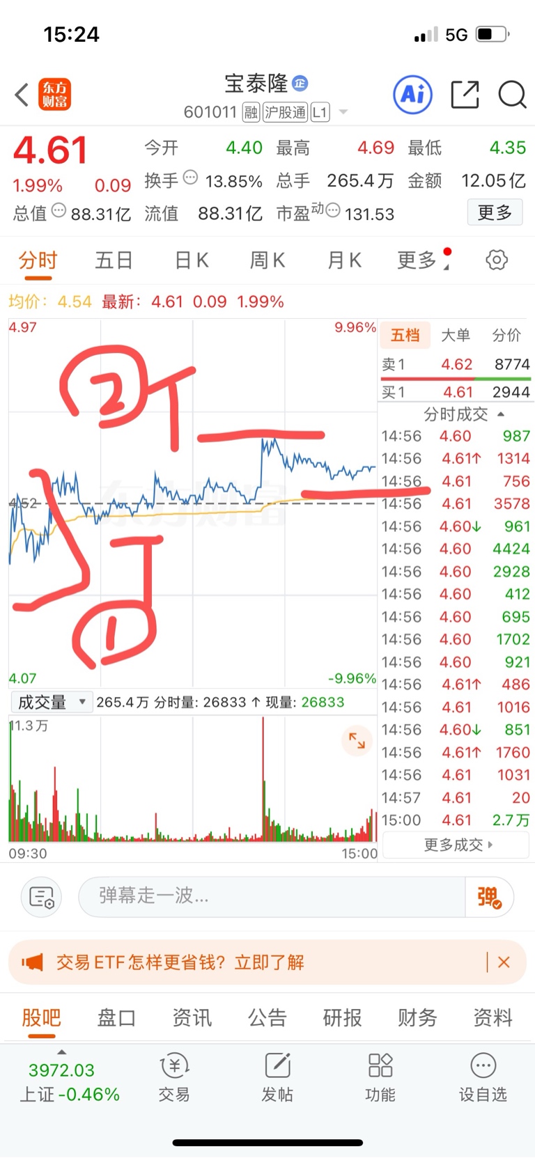 $宝泰隆(SH601011)$ 今日复盘 今天在煤炭板块的强势下 ,小宝没放大量 ,主力应该是继续蓄力洗盘 ,其他不多说了 ,就说一下操作 ,今天就根据上星期五的复盘 ,成功做了T 成本再降低三毛多 ,现在还是三分二仓, 止盈还是清仓还是继续看明天的盘面 (短期还是看多),股市有风险,投资需谨慎