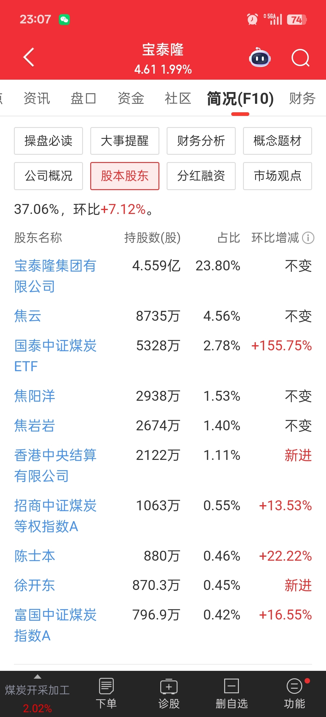 $宝泰隆(SH601011)$ 机构都在加仓,这点利润他们看不上,拿稳了