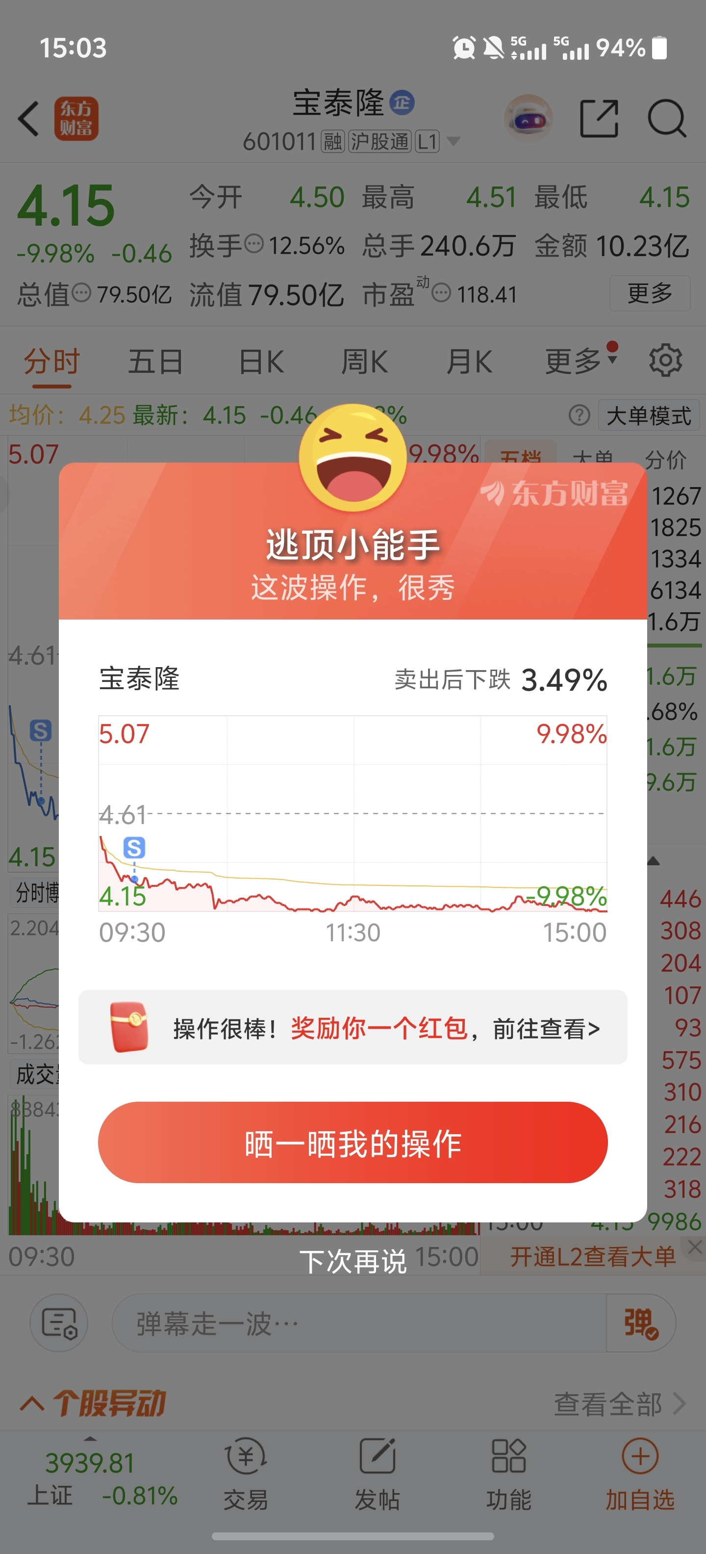 $宝泰隆(SH601011)$ 昨天收盘进的,看不到一点希望,割了