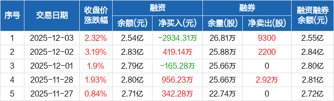 宝泰隆:融资净偿还2934.31万元,融资余额2.54亿元(12-03)