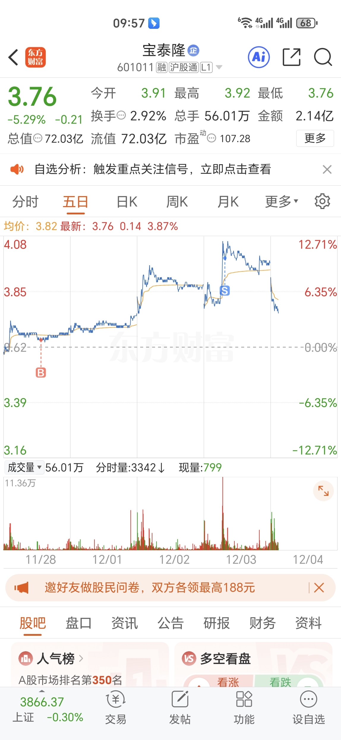 $宝泰隆(SH601011)$ 昨天眼看板块起飞压力都那么大,想着要是明天下跌不完蛋了直接跑了