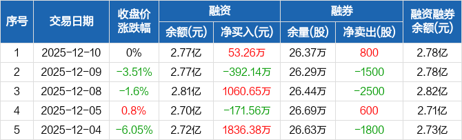 宝泰隆:融资净买入53.26万元,融资余额2.77亿元(12-10)
