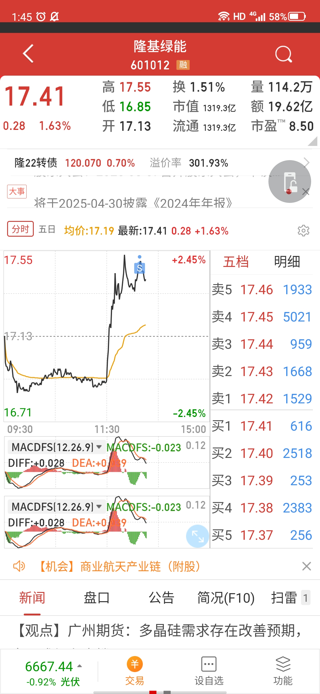 $隆基绿能(SH601012)$ 大盘假突破诱多,高低切又开始了吗?还是别的什么消息?我17.5挂了5手试盘