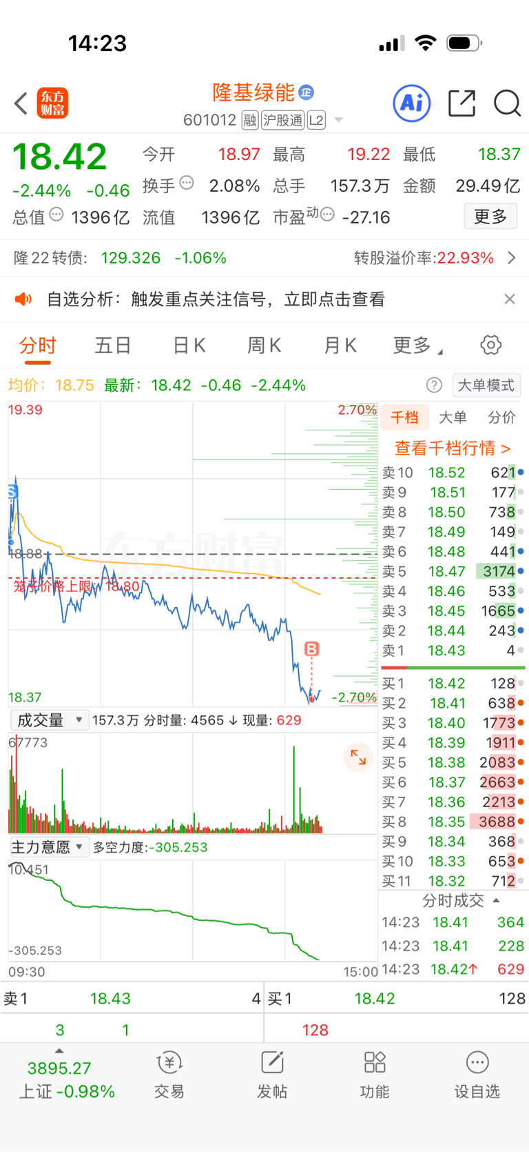 $隆基绿能(SH601012)$ 鸡哥今天下班了