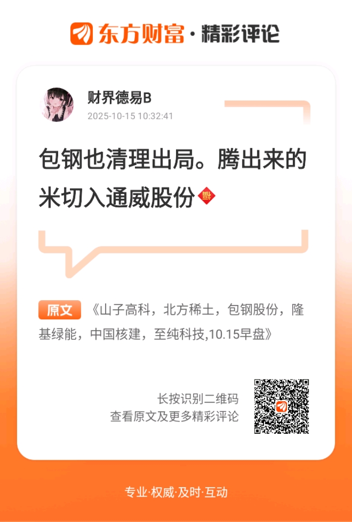 发表于 2025-10-15 10:40:52 东方财富Android版 发布于 云南