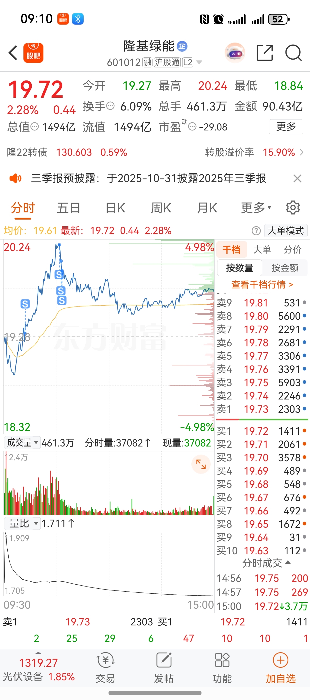 $隆基绿能(SH601012)$ 昨天板上被砸,还好今天早盘冲高,给了机会止损,从反内卷开始,光伏就是很多人第一个想到的板块,很多资金都提前埋伏,从短线的角度来看,就是很多冲高回落的原因。筹码的交换需要过程,也需要有产业拐点的刺激,时间换空间,每次上板都会来试错,或许下一次的冲高就是趋势的开始,等下次上板再来。复盘路过,杠精请绕道,大家发财哈!
