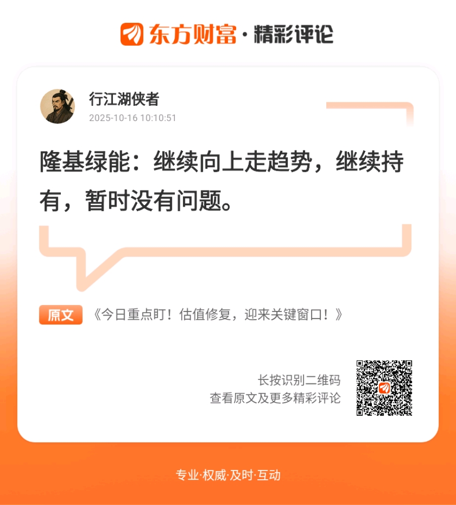 老师,多亏了您的分析,帮我理清了思路,真心感谢!//@行江湖侠者 :$隆基绿能(SH601012)$:继续向上走趋势,继续持有,暂时没有问题。