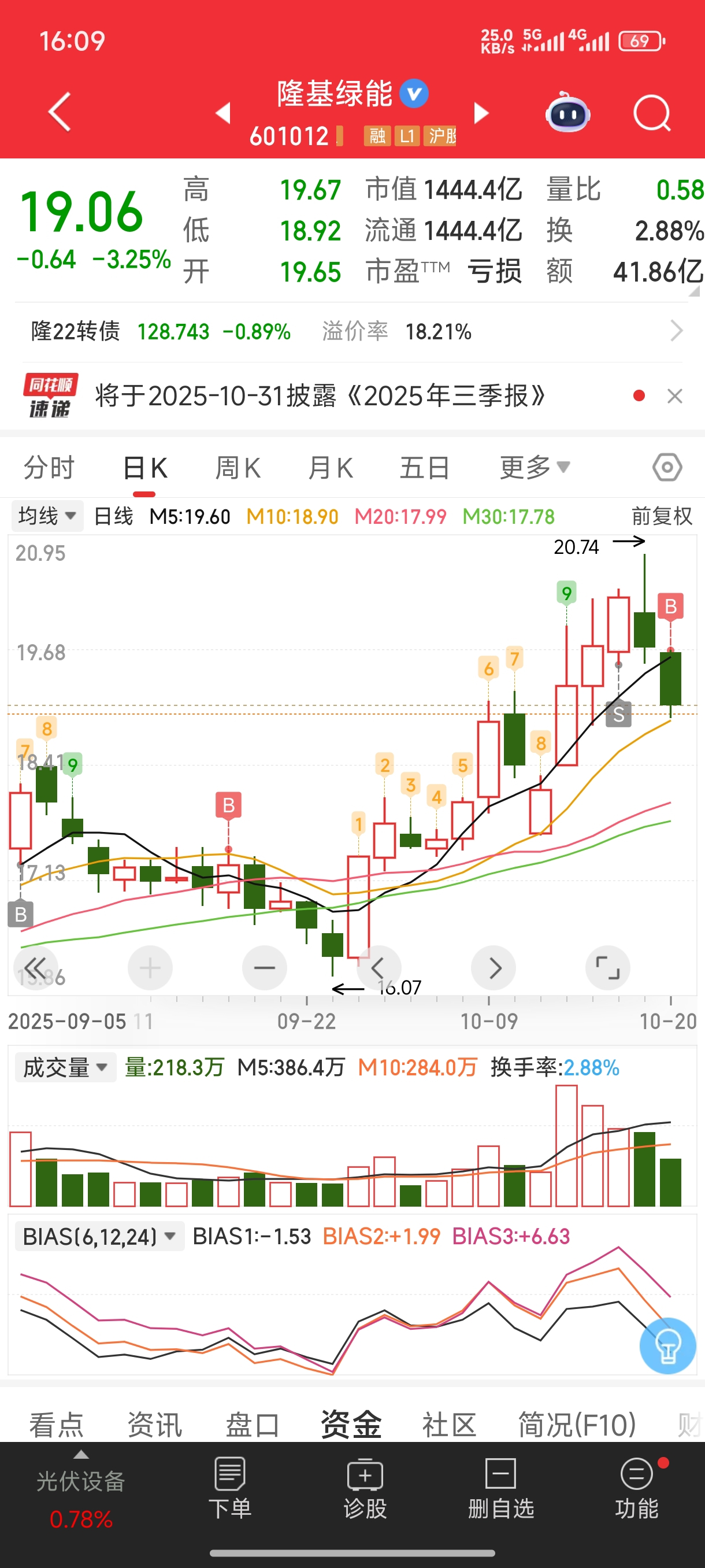 在通合科技和隆基绿能之间选择了隆基绿能。个人感觉隆基还会向上。看看明天会怎么样。