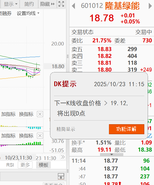 先是在底部发力,将股价拉升至19元以上,随后又迅速让股价回落到平盘位置,而且还稳稳维持在开盘价之上,有点东西啊!