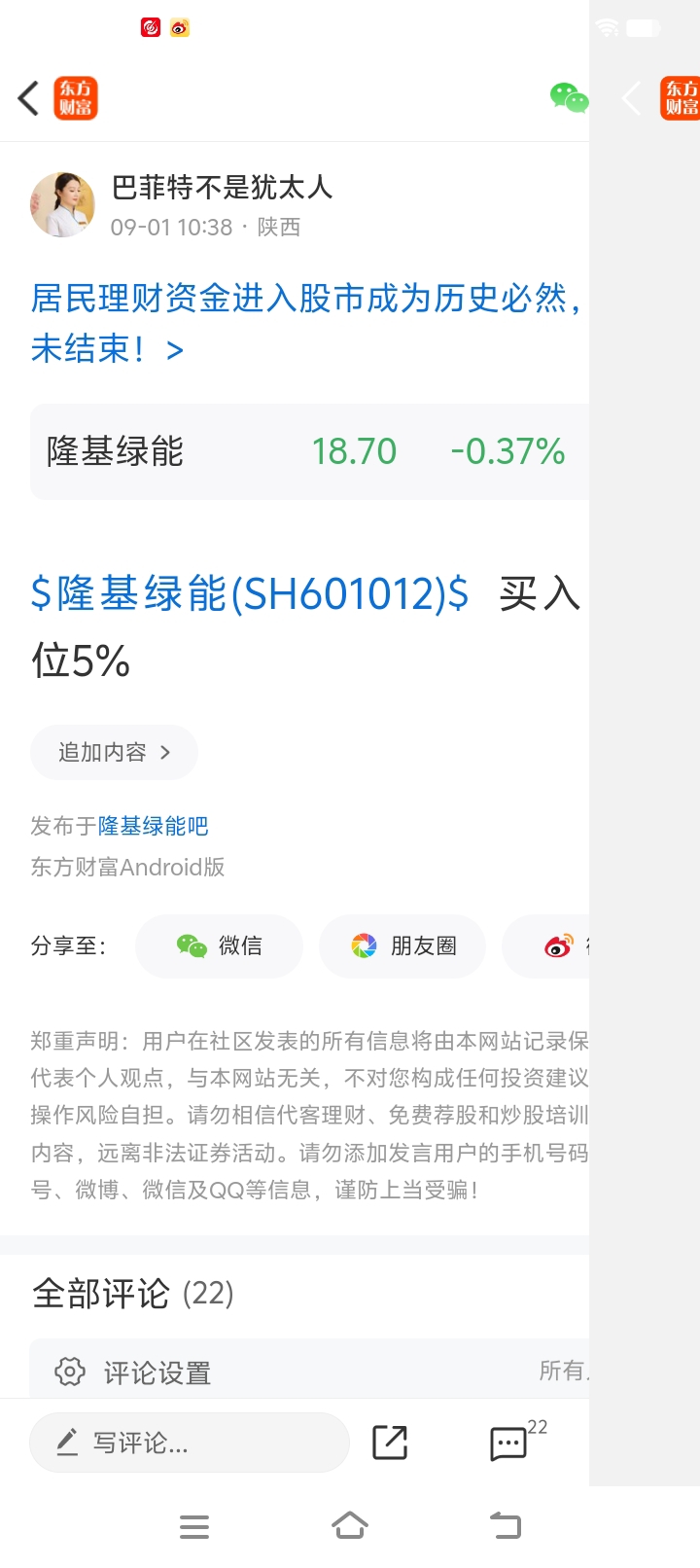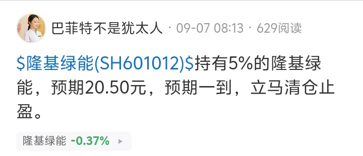 $隆基绿能(SH601012)$ 9月1日,在17元下方时,我就看多;9月7日,我更是给出20.50元的价格;试问那些张口就喷的人,哪一个不对?前些天,我又给出18.45元的价格,18.38元企稳迅速拉升。我本月给出的21.17元价格是否实现,让事实去验证吧!
