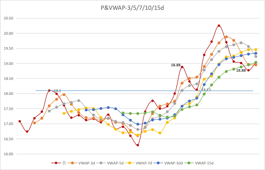 股价下跌干不过15日的VWAP支撑,半月内的主力成本也基本在19这个位置,再早期