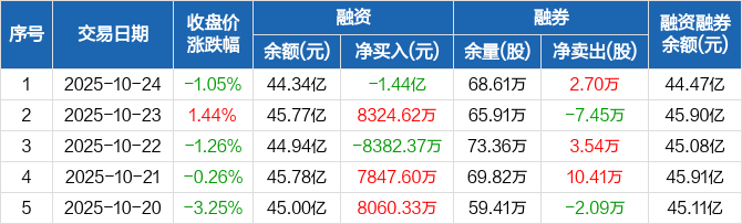隆基绿能:融资净偿还1.44亿元,融资余额44.34亿元(10-24)