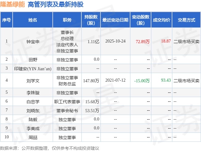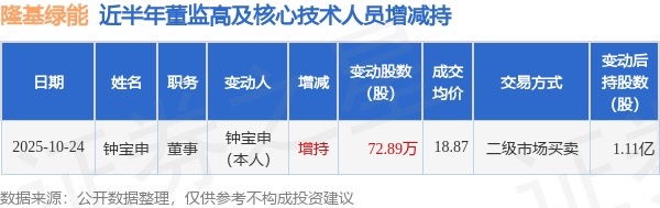 2025年10月24日公司董事钟宝申共增持公司股份72.89万股