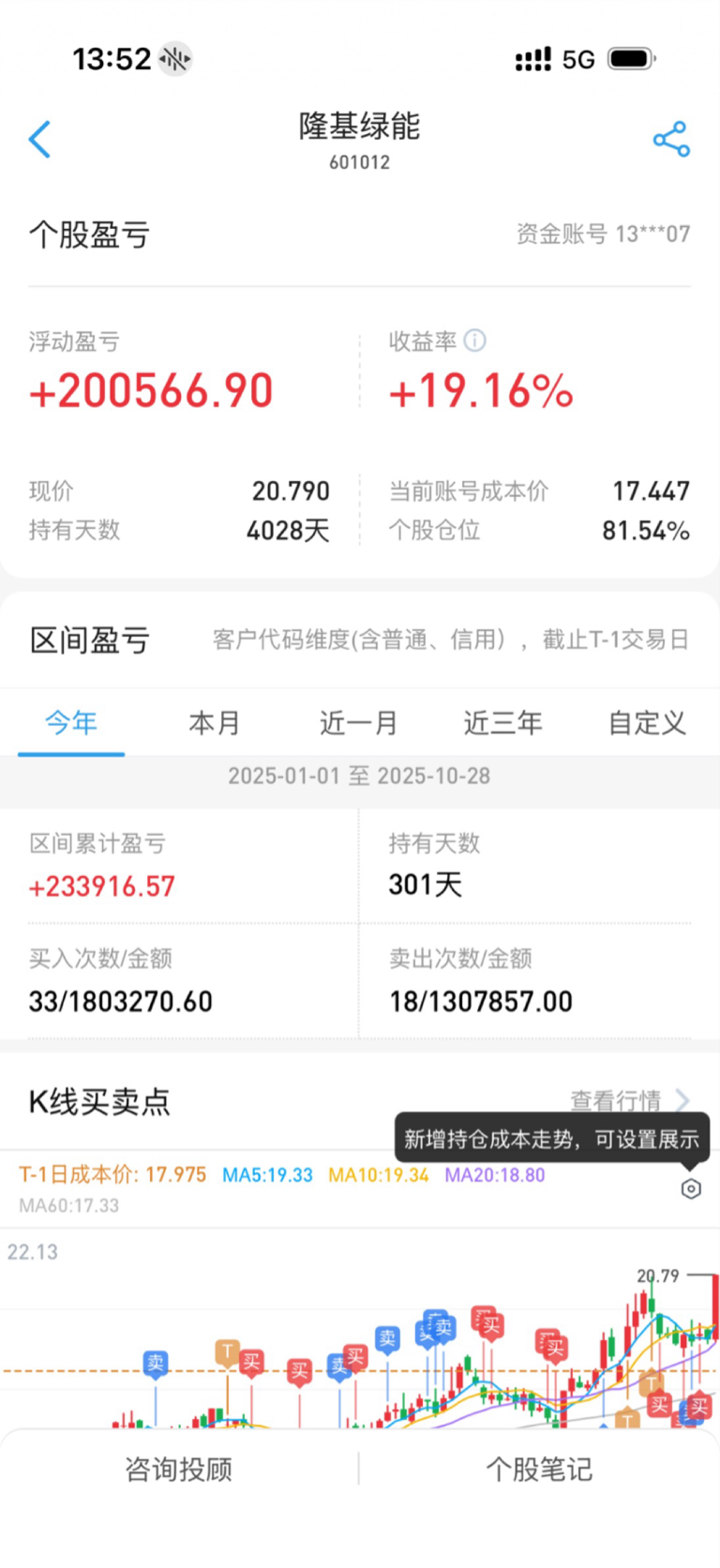 $隆基绿能(SH601012)$ 持仓4000天以上的都还有没有↔