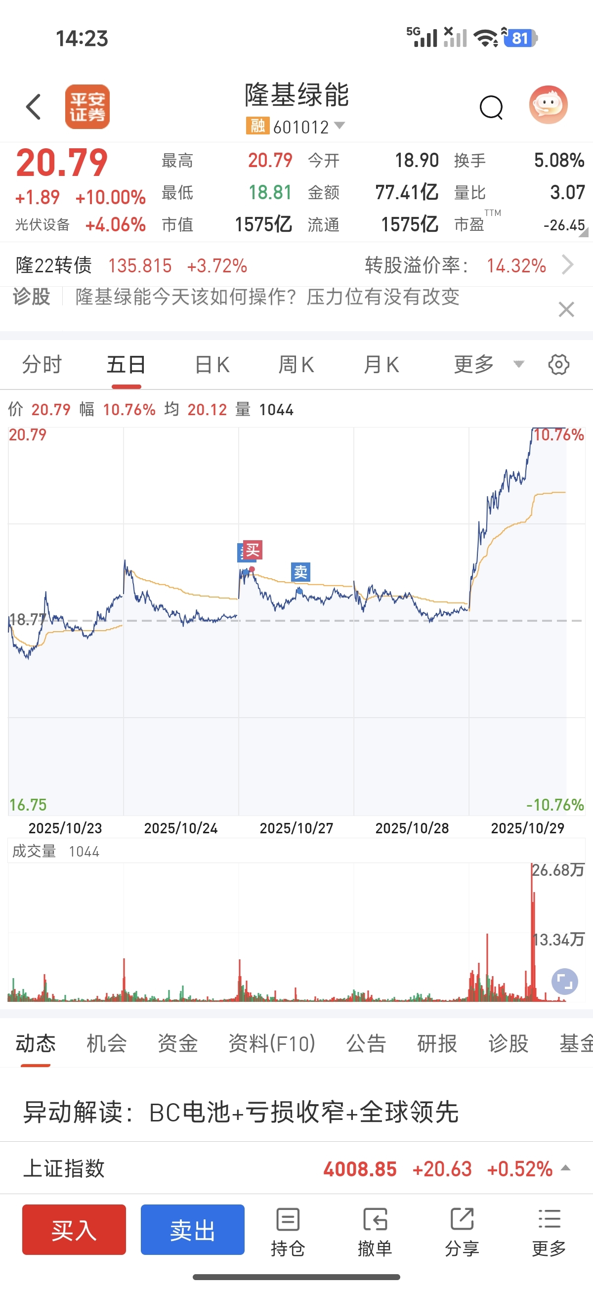 $隆基绿能(SH601012)$ 我上次16元清仓了6000股隆基 前几天20.5元买回来了,昨天我19.06元清仓了隆基, 今天隆基20.79元涨停了,我的问题是:请问隆基还有救吗?