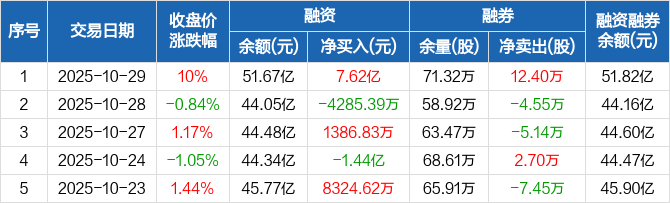 隆基绿能融资融券信息显示,2025年10月29日融资净买入7.62亿元;融资余额51.67亿元,较前一日增加17.31%。