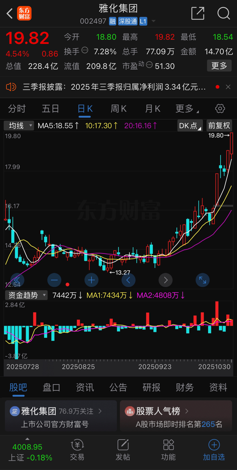 看看我昨天共享的雅化集团 002497 昨天大涨5个多点,今天继续大涨,两天轻轻松松10个点,有没有把握住机会的朋友,恭喜了