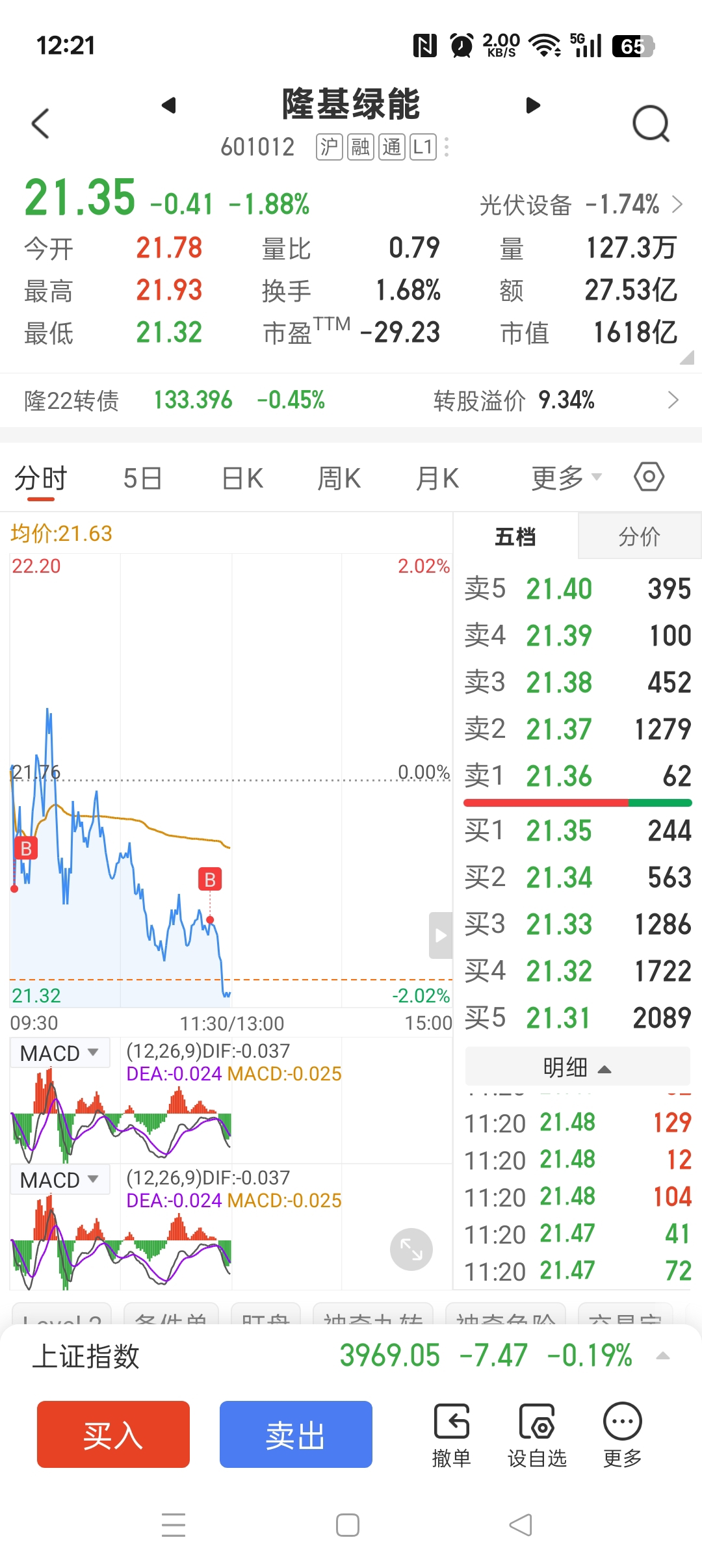 $隆基绿能(SH601012)$ 万一下午捅破天了
