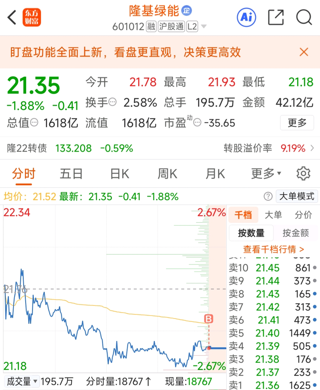 今天验证昨天的大盘属于下跌途中的弱势反弹而已,今天继续缩量向下调整,尾盘虽小V了一下,但是量能明显不足。隆基今天算是强势站稳5日线,所以果断尾盘加仓。目前成本从17.5到18.6耐心持有,不要被短期调整洗下车,正在走向上趋势
