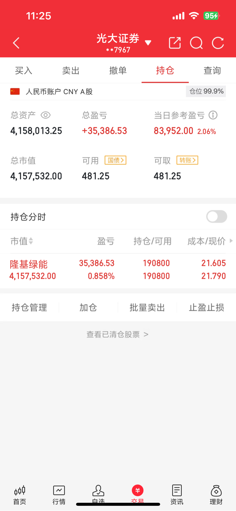 $隆基绿能(SH601012)$ 大盘翻红,我们的账户也随之翻红,继续耐心等待收益的扩大