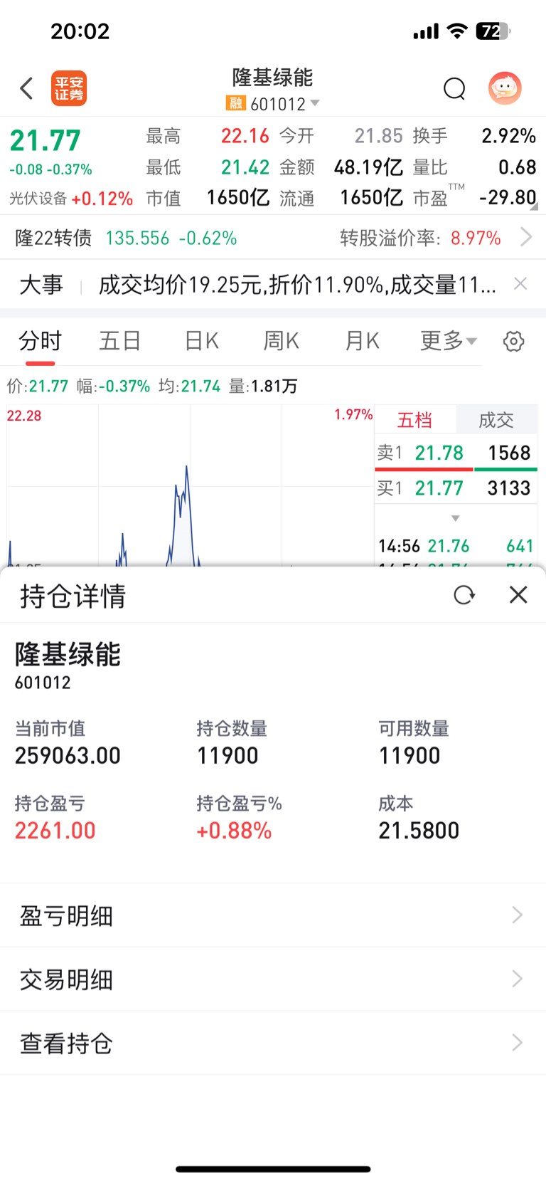 $隆基绿能(SH601012)$ 今日这么多散户进,明天没戏