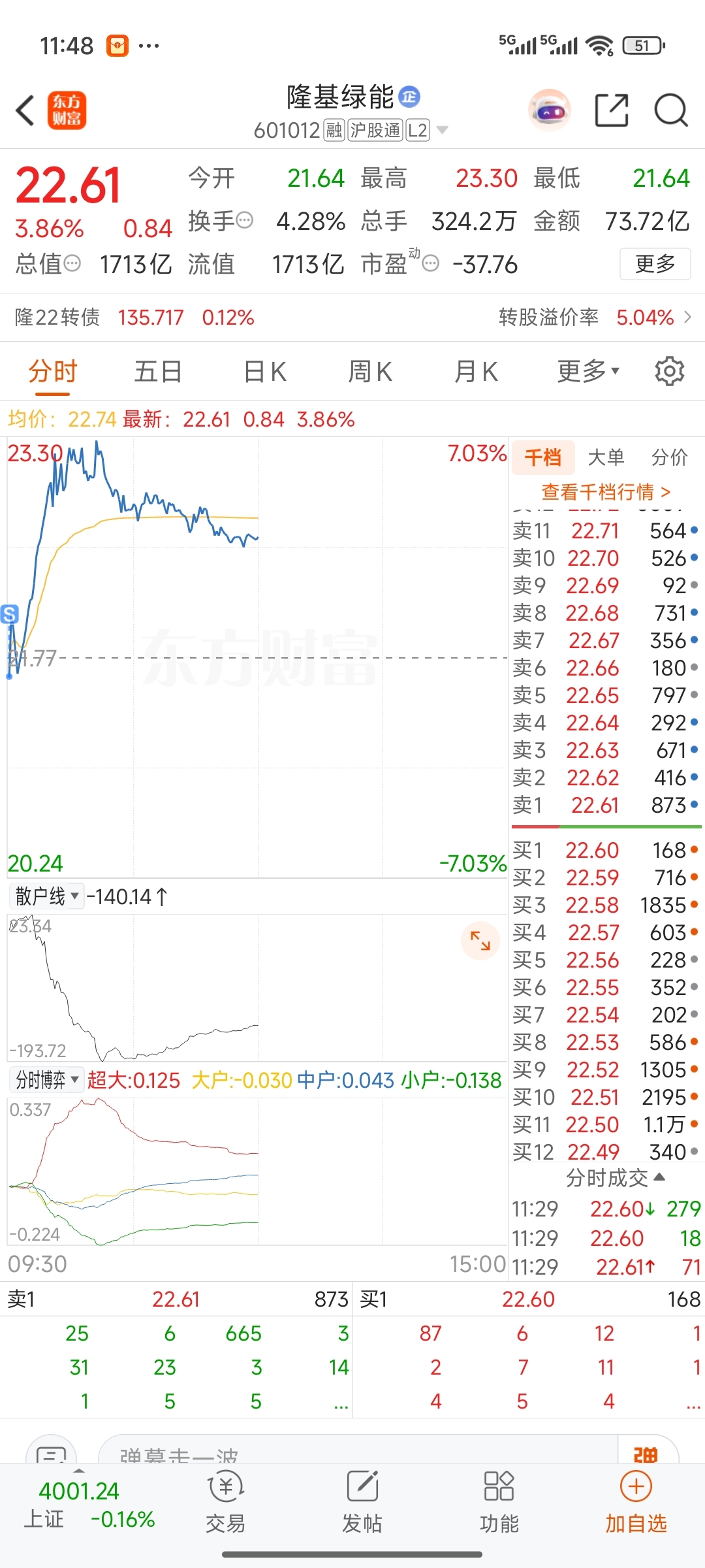 $隆基绿能(SH601012)$ 我不走他能涨吗 一人一句谢谢