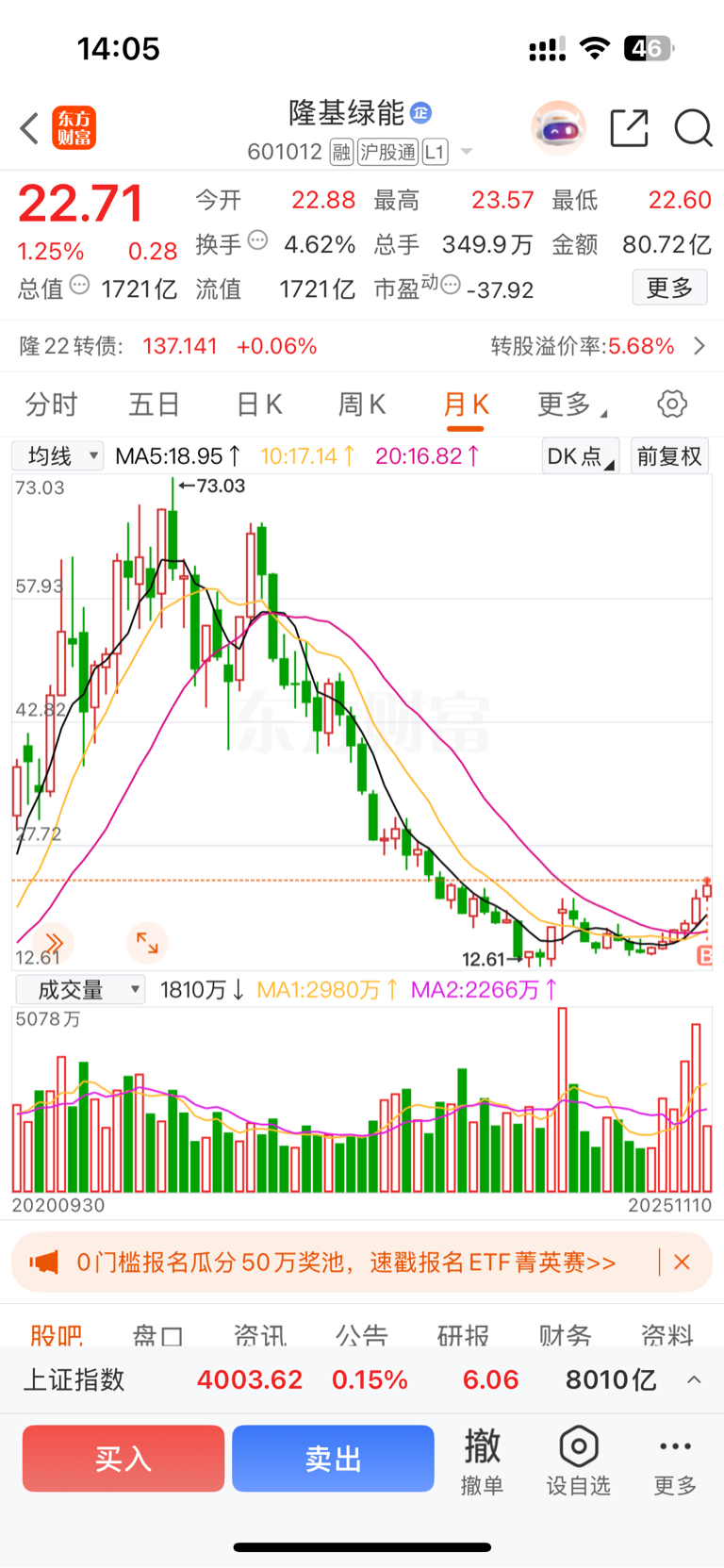 $隆基绿能(SH601012)$ 今天刚买,要当韭菜了?
