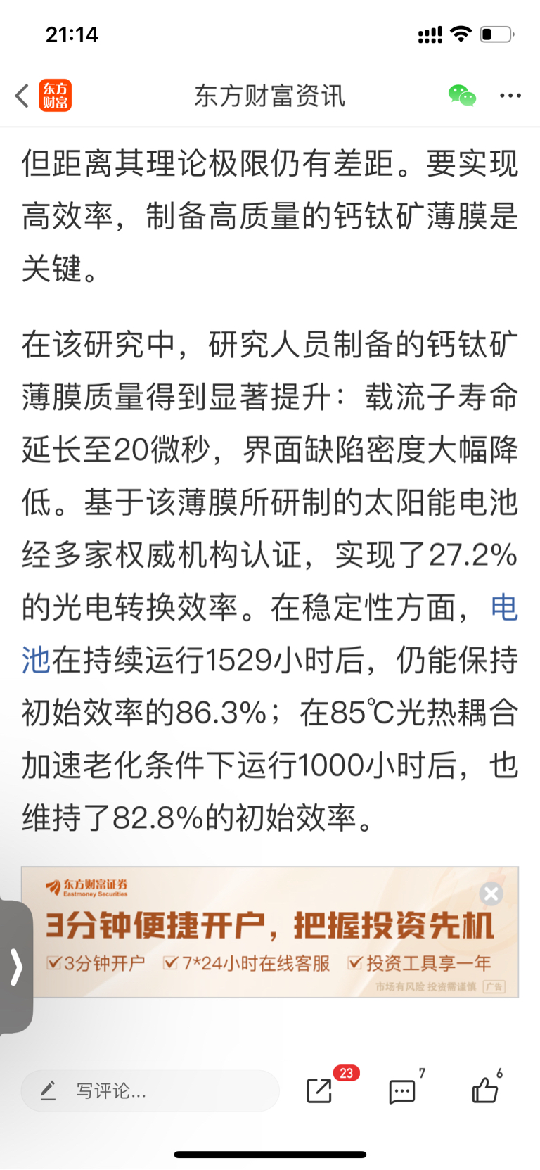 $隆基绿能(SH601012)$ 钙钛矿太阳能电池取得突破性进展,技术领先全球。