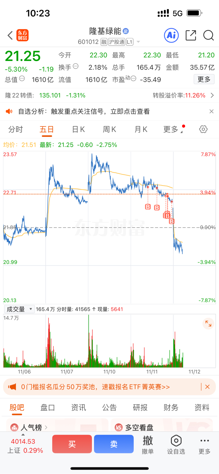 $隆基绿能(SH601012)$ 昨天进的,无语无语无语