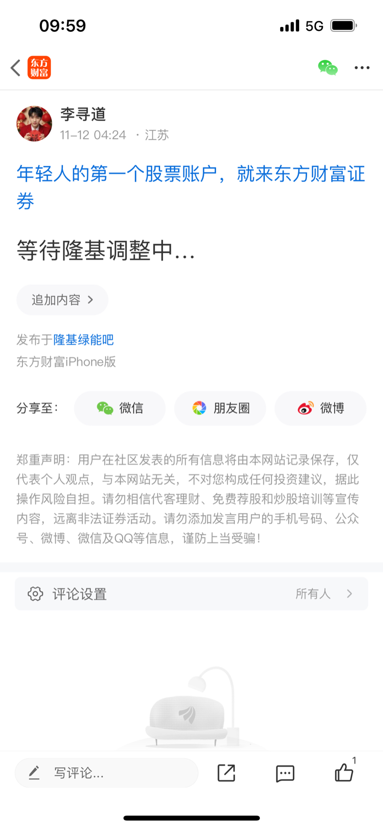 温馨提示: 1.根据《证券法》规定,禁止编造、传播虚假信息或者误导性信息,扰乱证券市场;2.用户在本社区发表的所有资料、言论等仅代表个人观点,与本网站立场无关,不对您构成任何投资建议。用户应基于自己的独立判断,自行决定证券投资并承担相应风险。《东方财富社区管理规定》