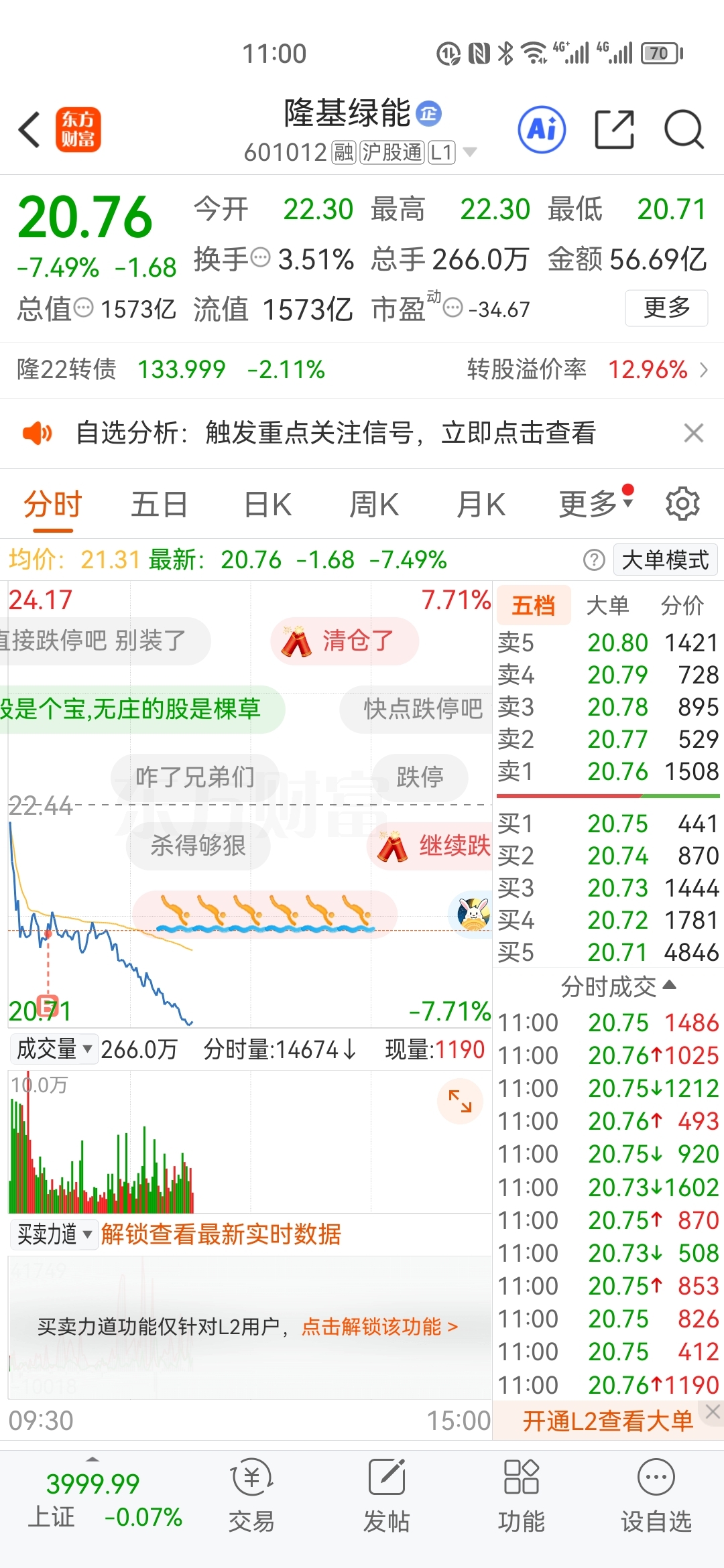 $隆基绿能(SH601012)$ 早上挂单抄底,亏三个点