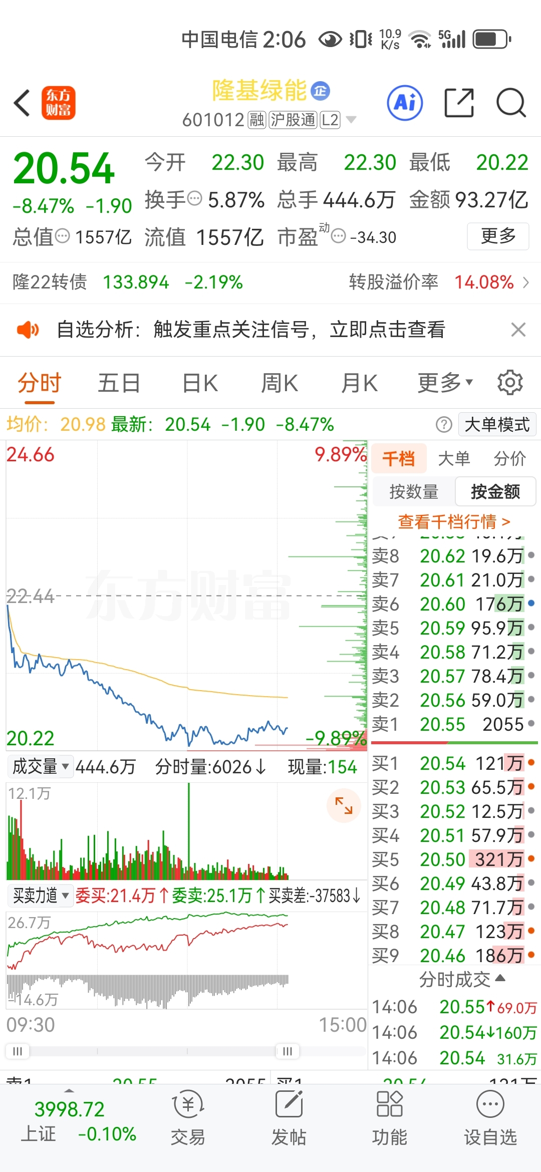 $隆基绿能(SH601012)$ 接近跌停我就买个底仓!20.26我已建立底仓,逢低我还会逐渐继续分仓拿捏点筹码!