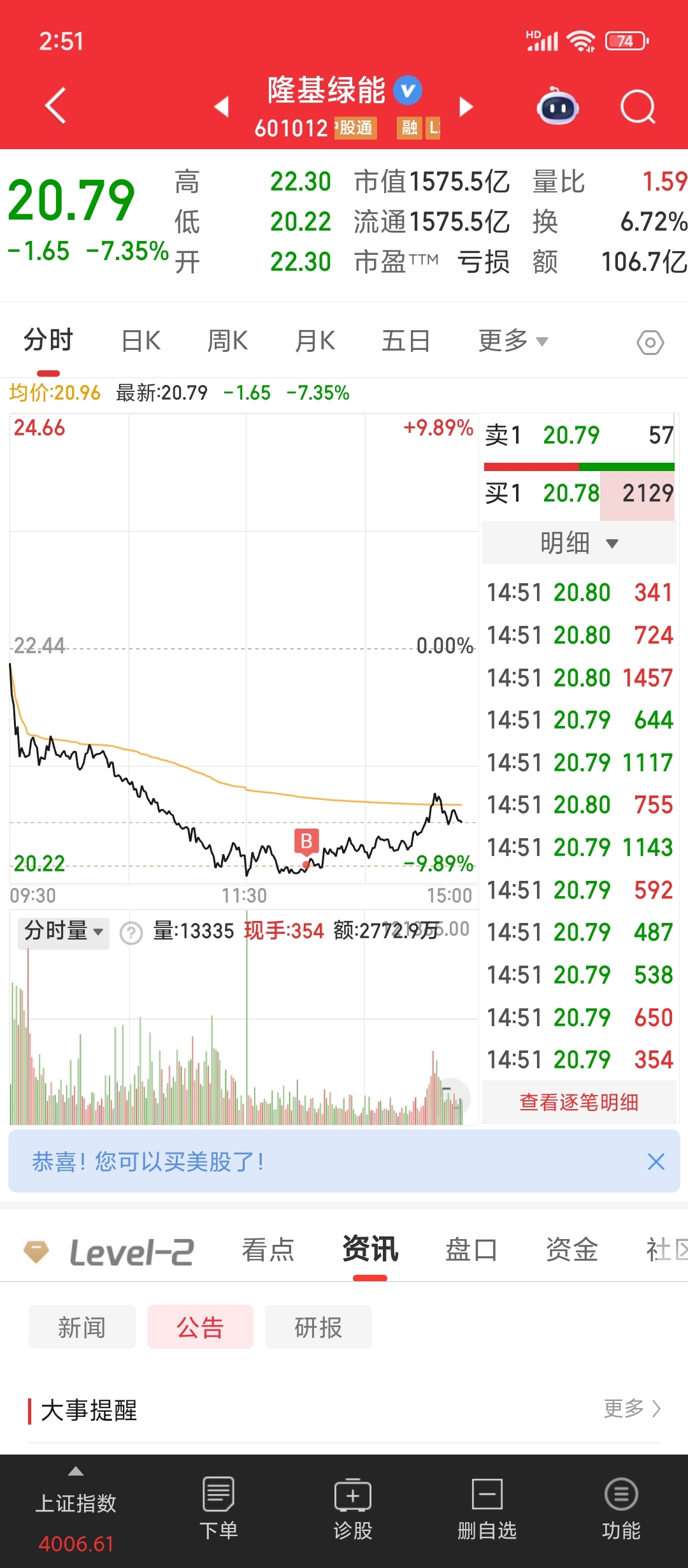 $隆基绿能(SH601012)$ 下午砸的有点深,感觉月线级别有趋势,上了部分
