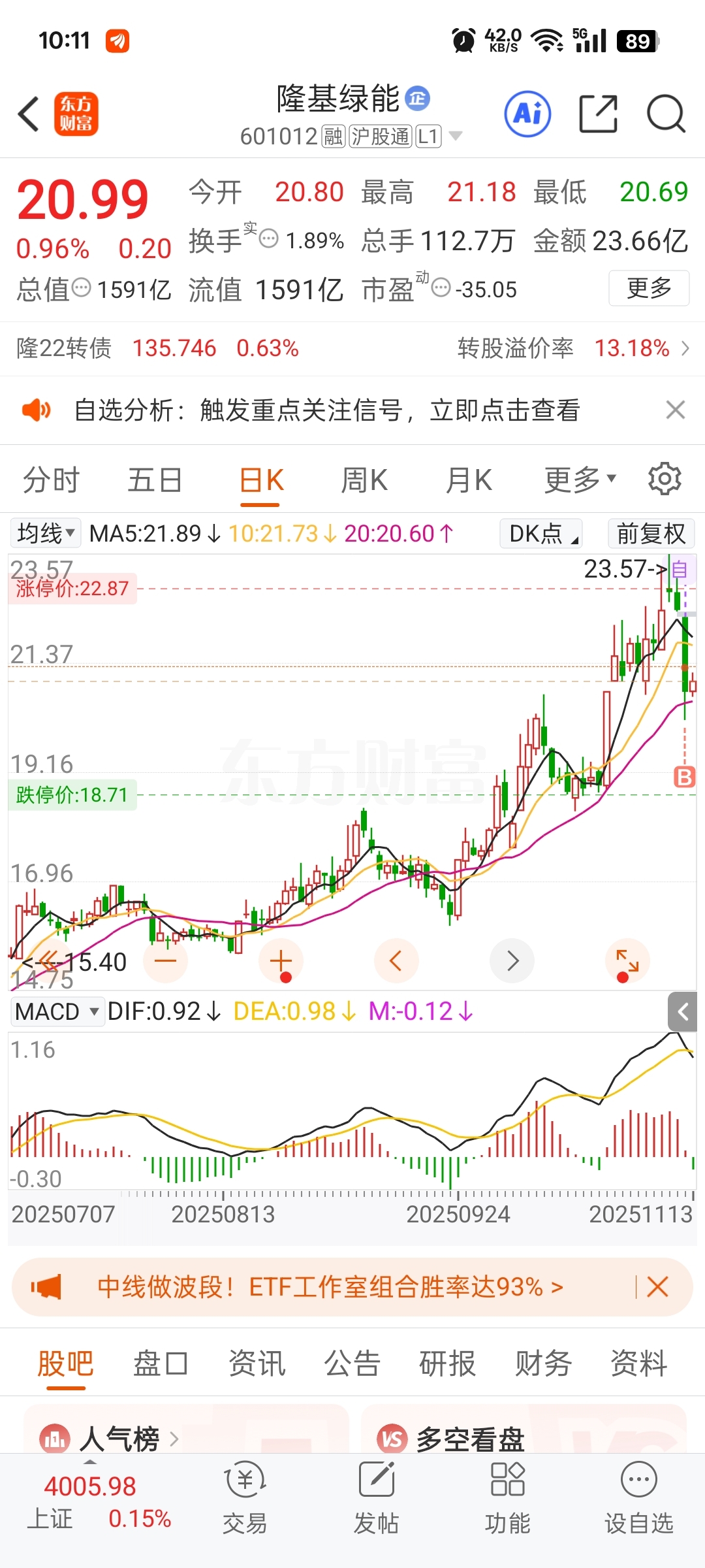 $隆基绿能(SH601012)$ 出来绿柱了,顶多调整一周,周月k很完美