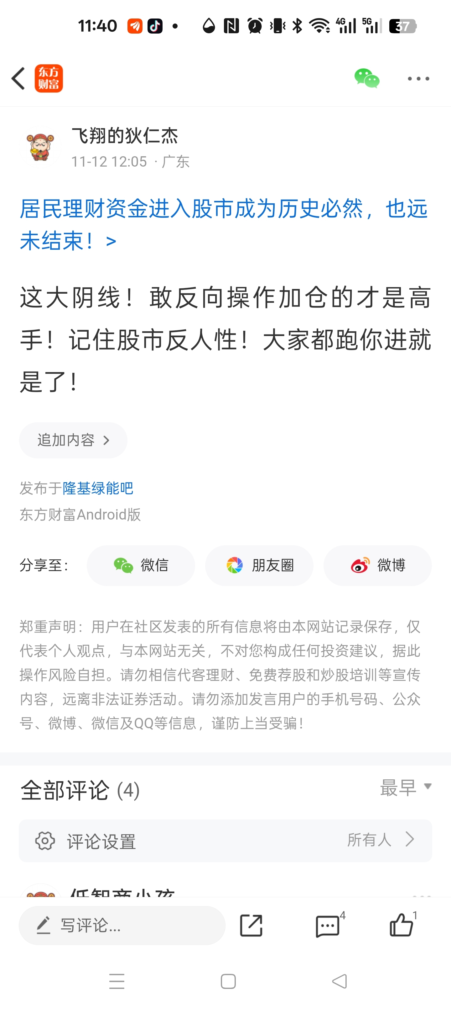 温馨提示: 1.根据《证券法》规定,禁止编造、传播虚假信息或者误导性信息,扰乱证券市场;2.用户在本社区发表的所有资料、言论等仅代表个人观点,与本网站立场无关,不对您构成任何投资建议。用户应基于自己的独立判断,自行决定证券投资并承担相应风险。《东方财富社区管理规定》