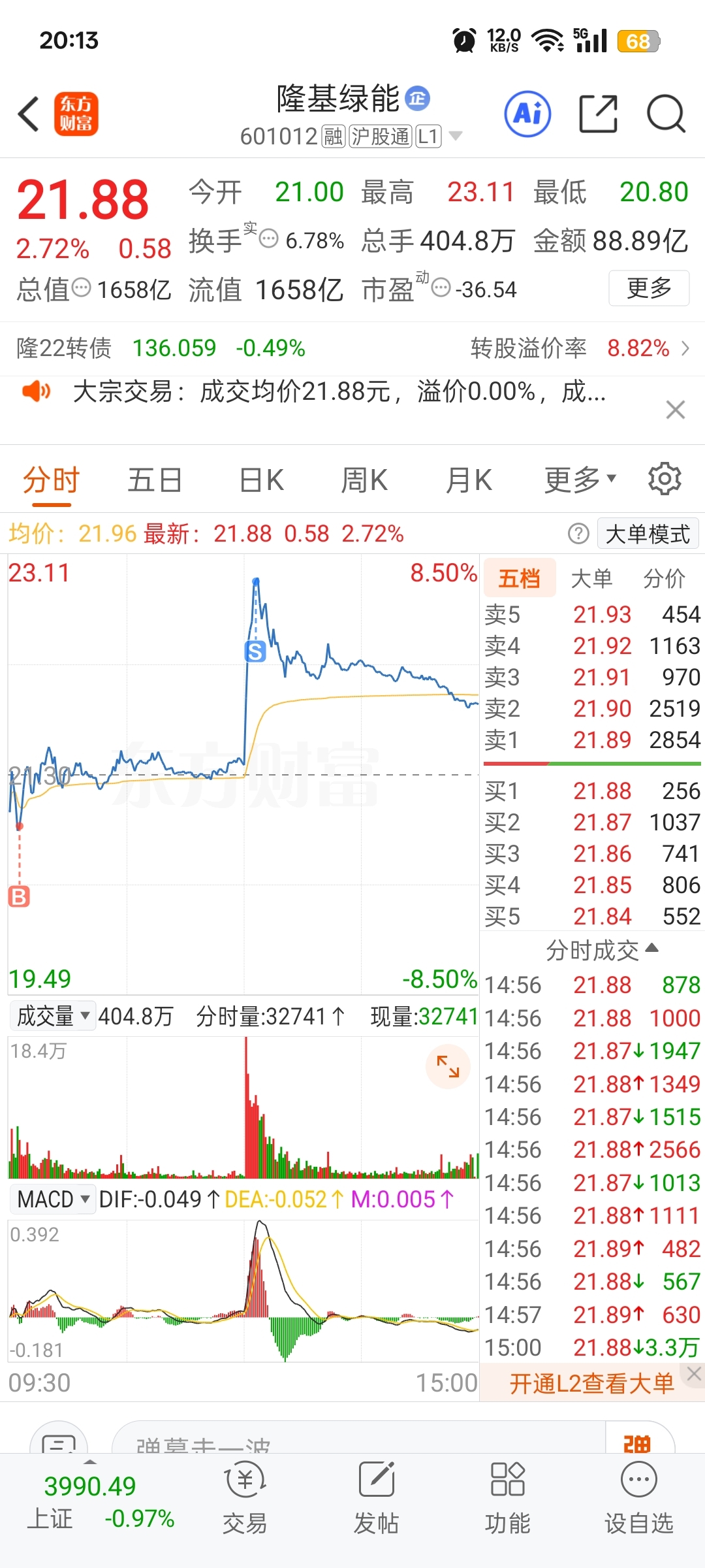 $隆基绿能(SH601012)$ 周一一字板涨停打我脸好吗
