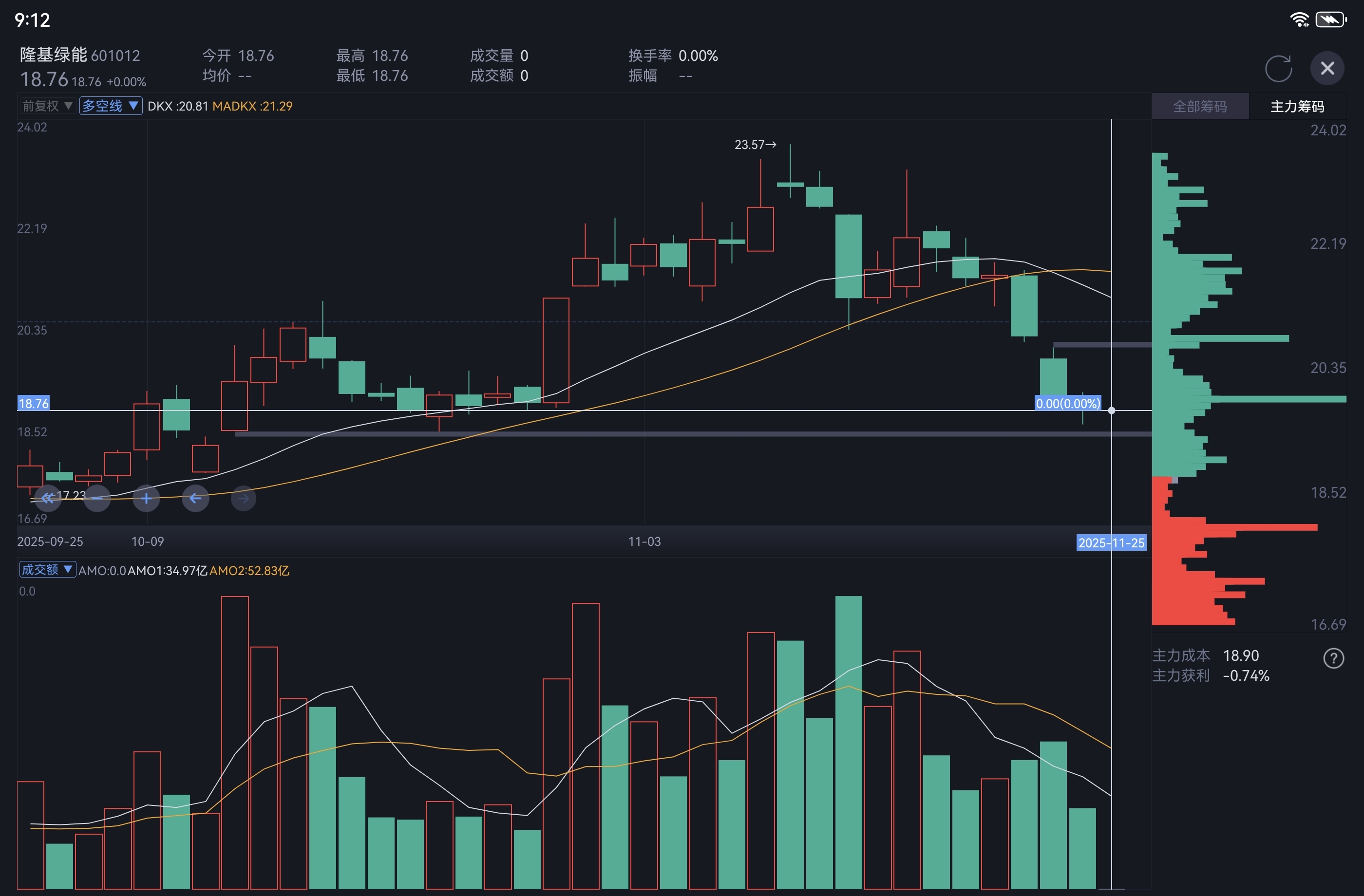 $隆基绿能(SH601012)$ 主力也不好过啊,都已经跌破成本区了。