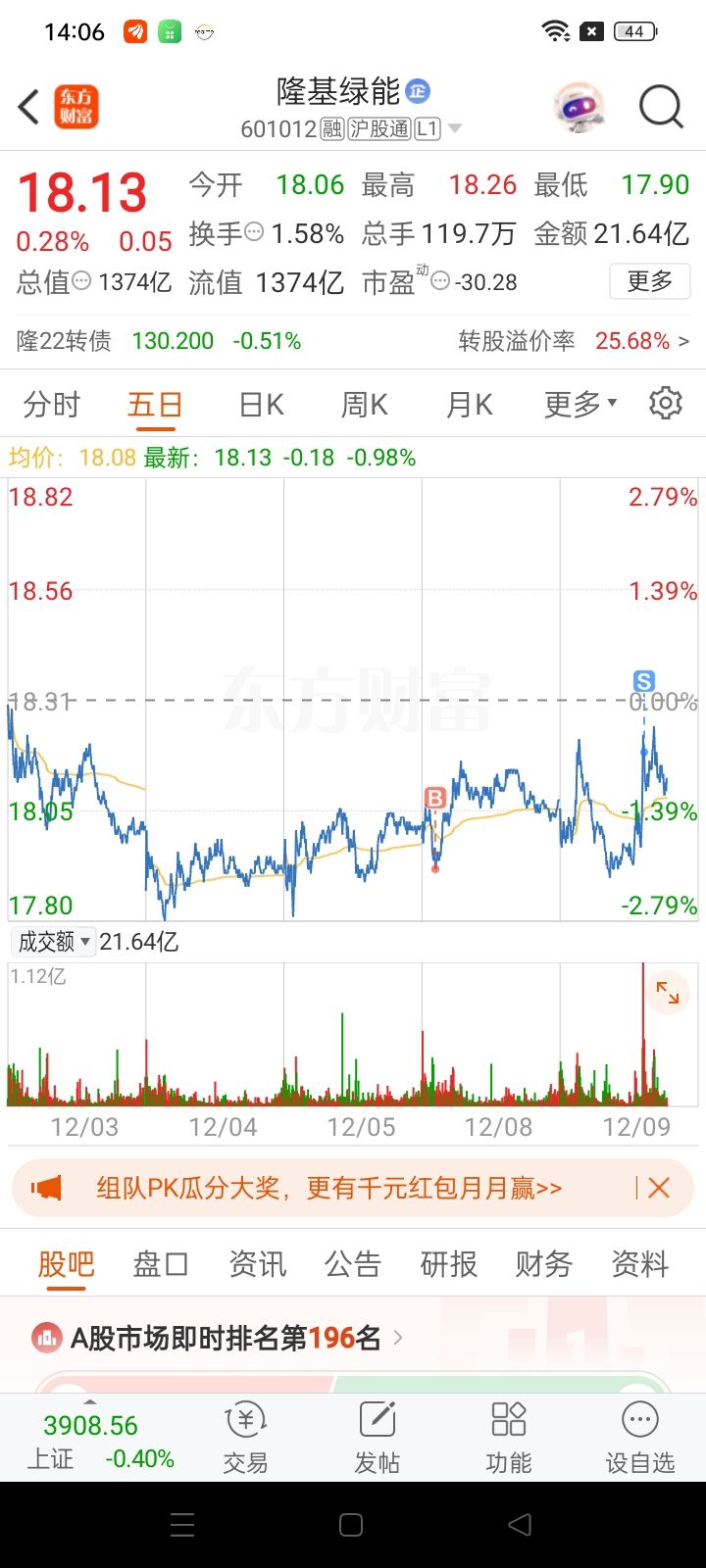 $隆基绿能(SH601012)$ 小赚1.5个点走了,绝不做后排,这就是通威的小弟,做通威去了,留下的发财