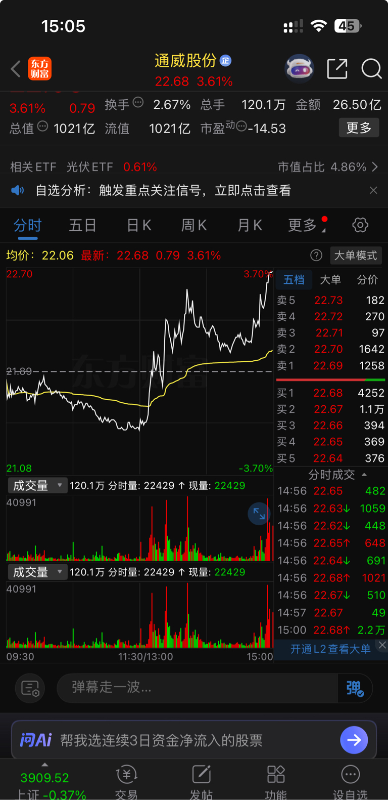 $隆基绿能(SH601012)$ 隆基已经废了,通威都把你超了,涨了 4%