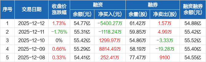隆基绿能:融资净偿还5400.27万元,融资余额54.77亿元(12-12)