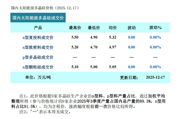 中国有色金属工业协会硅业分会在本周多晶硅周评中提到,本周(12月11日至12月17日)国内多晶硅市场呈现“成交清淡、报价探涨”的局面,尽管最新成交价暂未上涨,但市场新单报价均在上调。