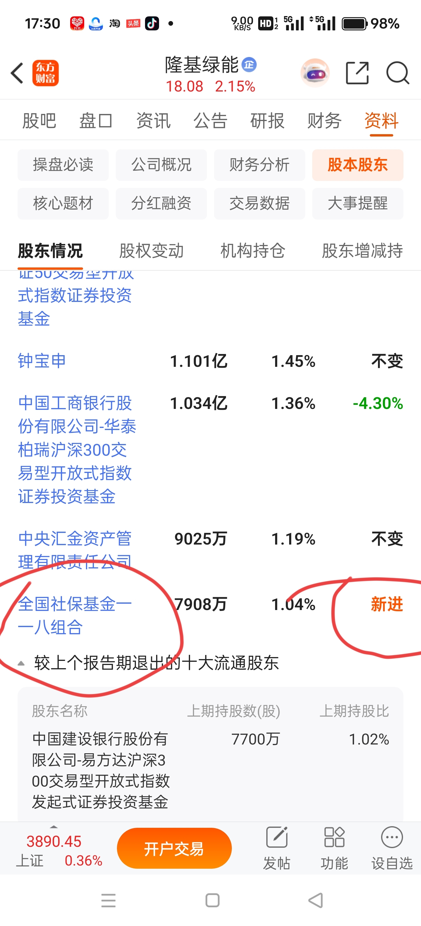 $隆基绿能(SH601012)$ 社保新进了,还会不涨吗?