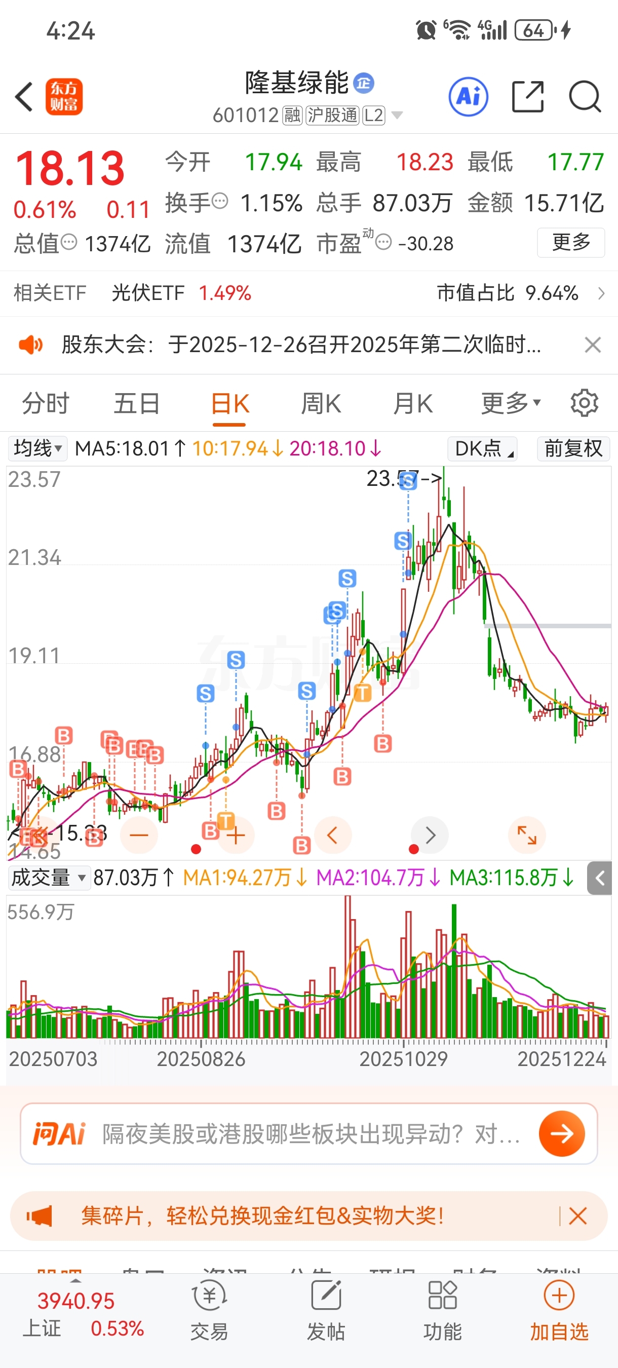 $隆基绿能(SH601012)$ 7.5日多少人骂我去看看吃了30%+可以了我还会回来的