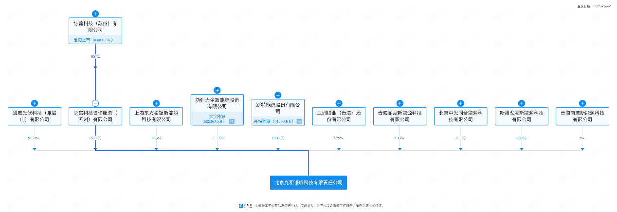 在一系列政策组合拳之下,头部企业牵头产能重组成为市场最关心的焦点,其中硅料环节成整合核心。硅料环节作为产业链牛鼻子,企业数量相对较少,且是本轮产能过剩的焦点,自然成为行业产能重组的理想切入点。12 月 9 日,注册资本 30 亿元的多晶硅产能整合收购平台北京光和谦成科技有限责任公司正式成立,该公司前五大股东穿透股权后,分别是持股30.35%的通威股份、持股16.79%的协鑫科技(03800.HK)、持股11.3%的东方希望、持股11.13%的大全能源(688303.SH)和持股10.12%的新特能源(01799.HK)。