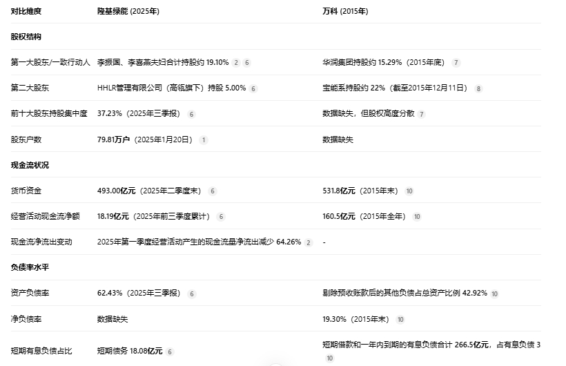 股权比当年的万科高了4%,货币资金少了30多亿,关键经营现金流才转正只有18亿多,看来隆基这个果子还不够成熟,还的继续发育一下