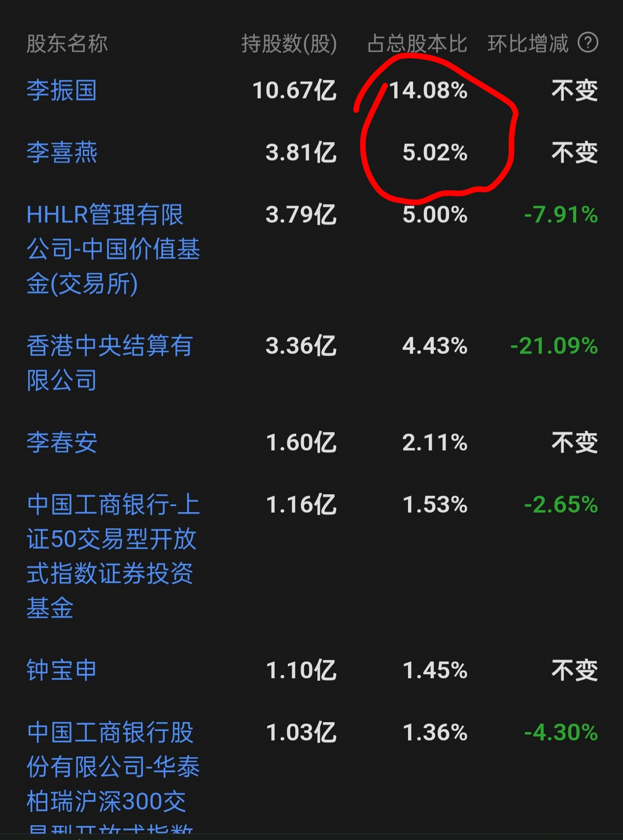 这个绝对控股比例真的太低了,当年高瓴资本5000多亿市值的时候都敢疯狂接盘买买买,后来被打肿了脸,减持到5%以下,老李头要想绝对控股,起码还的引入一个持股数量能达到15%以上的战略级伙伴,类似万科引入深铁那种级别的,陕西这边有钱的还跟隆基有渊源的也就陕煤集团了