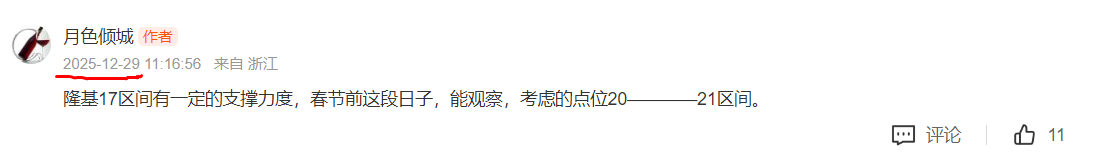 11.24号提前指出隆基绿能看18——17区间支撑,实际最低17.3止跌反弹。1