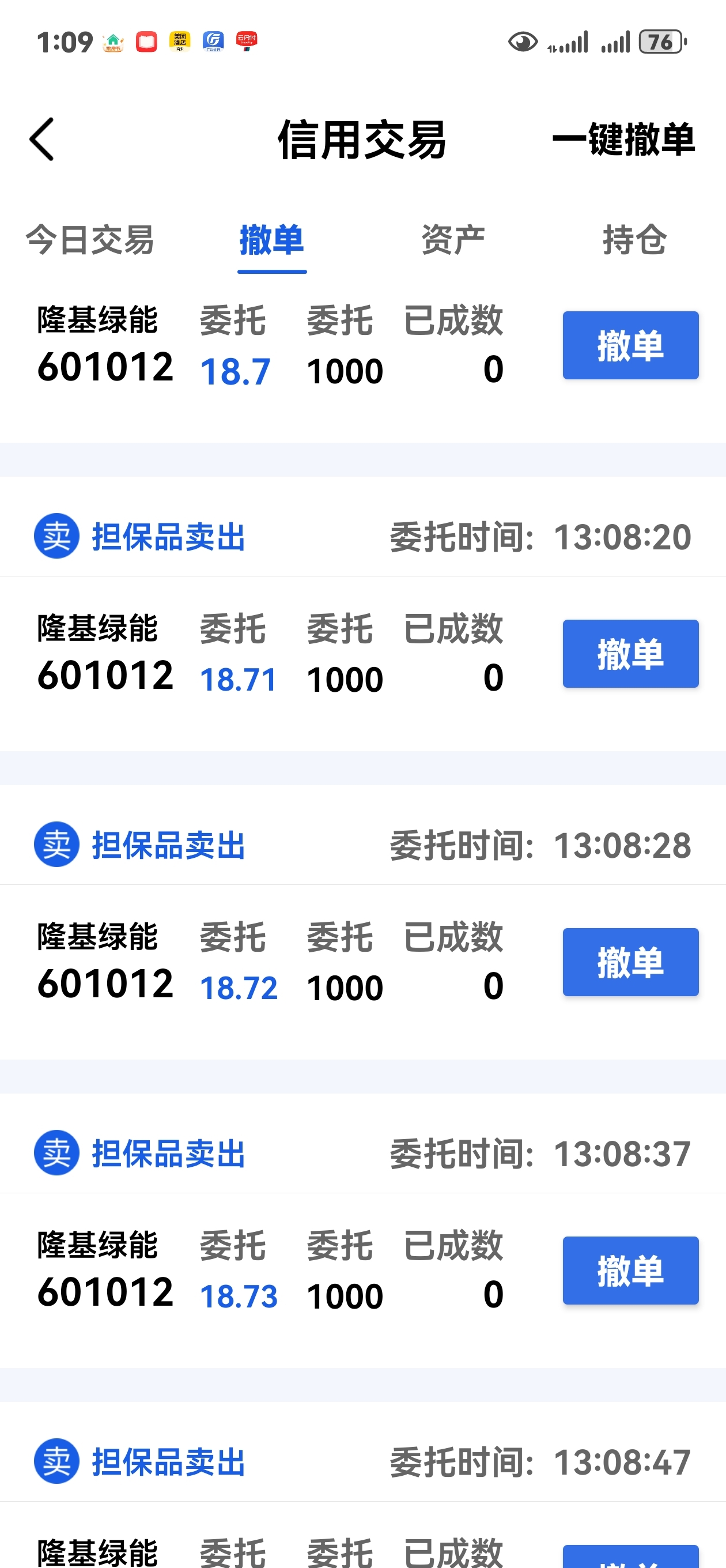 隆基牛逼呀,我昨天18.6开始卖出挂单,一直挂单到19元,每隔一分挂了十手,最高