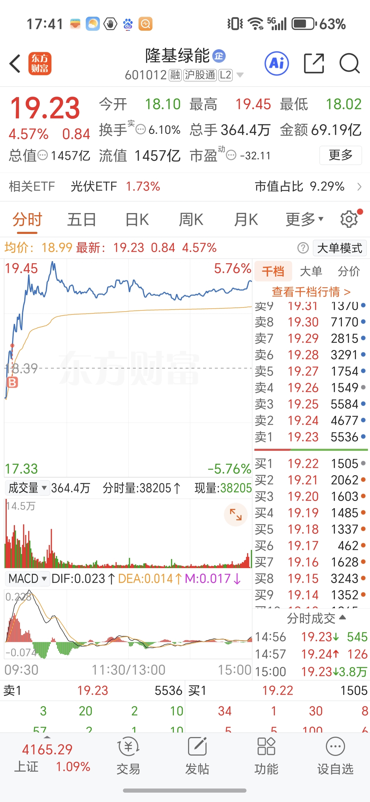 $隆基绿能(SH601012)$ 今天低点应该是近期低点了,开启往上通道。